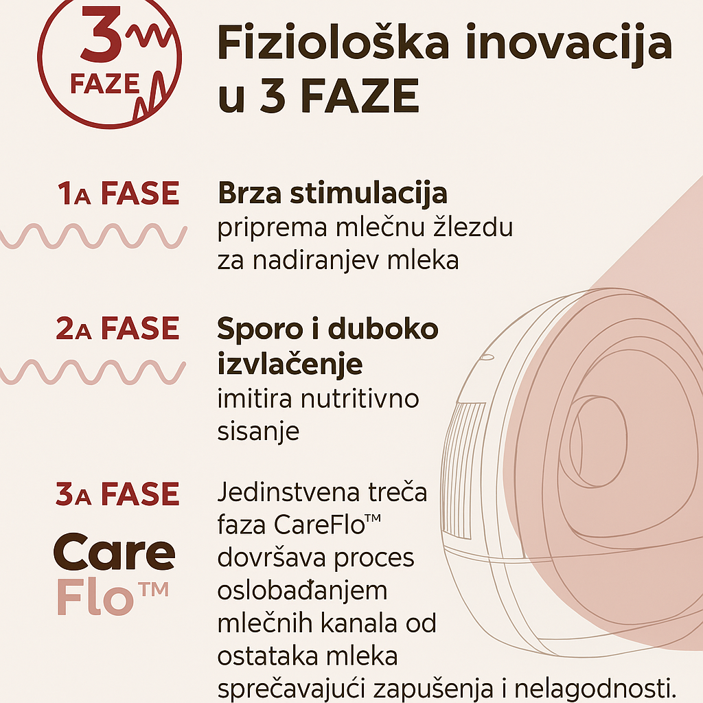 3 faze CareFlo™ tehnologije: stimulacija, ekstrakcija i oslobađanje.